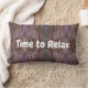 Time to relax with this lumbar pillow perfect for a rustic room or cabin. Combine the beauty of nature with a kaleidoscope affect and the result is this beautiful, abstract, rustic lumbar pillow. The deep lines of the wooden bark create stripes and beautiful color contrast in this abstract pattern. "Time to Relax" appears in white font which can quickly and easily be customized to your desire.