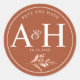 Rustic Brown White Monogram Save the Date Wedding Classic Round Sticker
