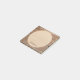 There is a light wood circle on a dark brown wood square background. The name is written in brown in the lower part of the ciurcle.