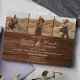 Rustic brown wood Elegant 4 Photos script wedding Invitation