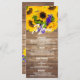 A modern, rustic brown wood stylish summer design includes a trendy summer sunflower floral with white printed handwritten typography. This Wedding Menu card is the perfect print for any bride and groom's Wedding event. Customize this design with your details.All designs are printed.