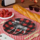 Rustic and bold red and black buffalo check plaid background paper plates. They also feature a black and white moose illustration. These plates are great for baby showers!