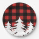 Rustic Buffalo Check Plaid & White Forest Trees Paper Plates
