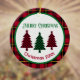 This plaid Christmas ornament features charming holiday trees in red and black and green and black buffalo plaid. Merry Christmas is displayed in a fancy festive font at the top, with the year displayed below. Make sure to type the current year in the template, or delete the text at the bottom if you don't want it. A red and green plaid borders the ornament.