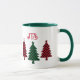 This holiday mug features charming Christmas trees in red and black and green and black buffalo plaid, with your or your recipient's monogram initials in fancy red typography above. Celebrate the holidays or nay day as you drink your yuletie coffee or sip your cinnamon spice tea. The cup shown here has a forest green colored interior and handles, but you can change it to red, or choose other mug, cup, and stein options.