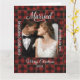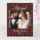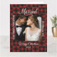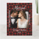 Rustic Buffalo Plaid Married First Christmas Card