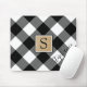 Black and white buffalo check plaid mouse pad with monogram on center and a modern handwritten script name. Delete the sample name to leave that area blank if not desired. The text font style, size and color can be changed for a custom lookby clicking on CUSTOMIZE FURTHER under the PERSONALIZE section or by contacting the designer via Zazzle Chat or makeitaboutyoustore@gmail.com if you'd like this design modified, on another product or would like coordinating items.