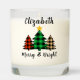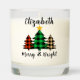 Add a cozy, rustic touch to your holiday decor with this Christmas candle, featuring three charming buffalo plaid Christmas trees in red and black, green and black, and beige and black. The phrase "Merry & Bright" is elegantly displayed in script calligraphy, bringing warmth and festive cheer to any room. Customize the candle with a name to create a thoughtful, personalized gift or a unique addition to your own holiday collection.