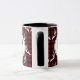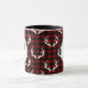 Rustic holiday mug featuring white deer a antlers pattern. The background is a red and black buffalo check plaid that's perfect for a rustic Christmas! Cozy up with your favorite hot chocolate or coffee this holiday season in bold rustic wilderness style!