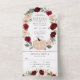 Rustic Burgundy and Peach Floral Pumpkin Wedding All In One Invitation