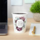 A beautifully feminine bridal shower design that captures the essence of rustic elegance with its abundant display of peonies and roses in harmonizing deep burgundy, and plum with trailing eucalyptus greenery. The feminine botanical elements pop with style and sophistication. Personalize the text template with the Bride-to-Be's name for a lovely custom paper cup for your event. Great for hot or cold beverages.