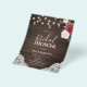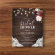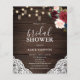 Bridal Shower invitation features botanical burgundy and blush flowers and string lights on rustic wood.