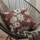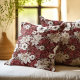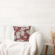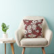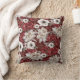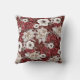 A rustic burgundy and cream rose floral patterned throw pillow.