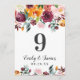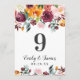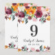 Vibrant autumn florals in burgundy, golden orange, and lush greenery create a beautiful seasonal frame on this rustic wedding table number card. The clean white background lets the rich, hand-painted blooms take center stage. The couple's names, date, and table number are easy to personalize. Each table number must be individually personalized and added to the cart one at a time.