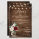 Rustic country string lights and mason jar with burgundy, red, Marsala, maroon , ivory, blush color floral bouquet and eucalyptus leaves on wood background wedding menu. Please contact me for any help in customization or if you need any other product with this design.