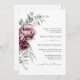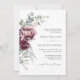 Rustic Burgundy Floral QR Code Fall Wedding Invitation