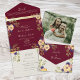 Bright, bold, and romantic—this burgundy floral all-in-one wedding invitation bursts with color and personality. Featuring hand-painted florals in blush, violet, and gold on a deep wine-red background, this invitation includes RSVP, guest info, and a full-back photo panel. The floral accents flow through the design for a cohesive and joyful look. Ideal for fall or summer weddings with a boho or garden vibe.