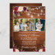 Rustic Burgundy Floral Wood 3 Photo Lights Wedding Invitation