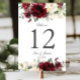 Rustic Burgundy Ivory Floral Wedding Bridal Shower Table Number