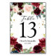 Rustic Burgundy Navy Blue & Red Flowers Frame Table Number