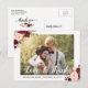 Rustic Burgundy Red Floral Wedding Photo Thank You Postcard