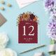 This exquisite acrylic table number features a stunning rich burgundy and burnt orange floral design in an arch shape. Easily personalize each table number by clicking the "Edit Using Design Tool" button to re-arrange and format the text to your liking. Choose from two exquisite finishes: Clear or Frosted, and select between two stylish corner options: Rectangle or Arched.