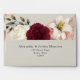 Elegant, rustic, watercolor floral burgundy 5x7 envelope for wedding invitation with mason jar monogram inside, string lights and modern calligraphy script.