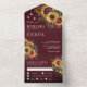Rustic Burgundy Wood Boho Sunflowers Wedding All In One Invitation