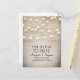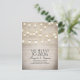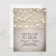 beautiful and romantic rustic country save the date postcard with old vintage burlap lace background and string lights illustration.