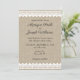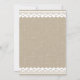 Plain white envelopes are included with paper invitations and will come to fit the invitation size you select. If you don’t need the envelopes, you may choose to not receive them by selecting the dropdown below "Envelopes" and choosing "None." If you’d like to have a design on your envelopes, you can browse all of these available envelopes to find the design that complements your Rustic Burlap And White Lace Wedding Invitation.