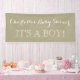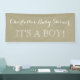 Custom name it's a boy baby shower sign with rustic country burlap pattern and vintage style handwritten lettering. A perfect personal touch for your rustic or woodland theme baby shower.