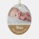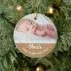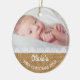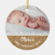 This rustic style ornament has a faux burlap and lace design and commemorates your baby's first Christmas. You can add two separate baby photos, one on the front and one on the back, and personalize with your baby's name.