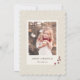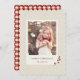 Rustic faux burlap canvas texture holiday photo card with winter red berry branch and red plaid pattern on the back.