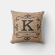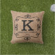 Rustic Burlap Family Name Monogrammed Throw Pillow
