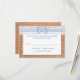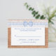 Rustic country chic wedding RSVP response cards, done in a burlap look, with a white text area. Graphics of a white lace band with a light blue and white gingham ribbon and bow stretch across the top. Personalize the blue text for your special day. Matching wedding products available.