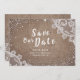 Elegant white vintage lace and sparkle silver glitter on rustic burlap save the date cards. great for rustic wedding, barn wedding, country wedding and vintage wedding.