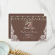 Unique card design featuring string lights, old lantern with marsala flowers bouquet on a burlap with lace corners background. Use Customize tool to add your info. See, also, my Vintage Lace Collection.