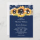 Rustic Burlap Lace Sunflower Navy Blue Wedding Invitation