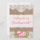 Click "Customize It!" to move/adjust text and colors! For the rustic/country bride to be! An elegant way to ask your girls to stand by your side ont he big day! Featuring burlap and lace with pretty pink roses and peonies Matching Invitations, Bridal Party Cards, Postage, Envelopes and more also available in my shop. ©2015 Weddings*n*Whimsy