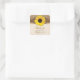 Rustic burlap, lace, and wood yellow sunflower wedding favor stickers. This unique rustic sunflower wedding favor sticker design features a bright yellow sunflower, a burlap and lace look background, and a wood and leather look emblem under the sunflower. A pretty design for a summer or fall / autumn wedding. It can work for rustic, barn, farm, western, or country style weddings. There are a lot of subtle details in the design. Browns, yellows, beige are the prominent colors.