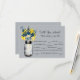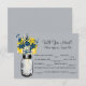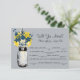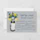 Matching LIB RSVP card perfect for a country style wedding or maybe you just love Mason Jars! Mason Jar hanging on a hook filled with country wildflowers. A Light Silver Gray background and hanging Mason Jar and wildflowers in colors of Navy and Yellows. If you have any questions on this design or want a color change please email me paula@labellarue.com Also check for the RSVP, RECEPTION and GUEST SEATING Cards to match!