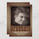 This rustic inspired photo graduation announcement features a brown burlap background and frame for your black and white photo (*IMPORTANT this photo must be black and white because it uses the provided San Telmo filter applied to get the coloring this photo has). Below the photo it reads "Graduate, Your Name, Your high school and Class of 20XX" to personalize. The back of the card has brown burlap and your monogrammed initials for you to personalize. This was a fun design to create for all you guy grads out there that want something unique. Enjoy! Designed by artist ©Susan Coffey.