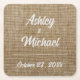 Rustic Burlap Nature Pattern Wedding Custom Square Paper Coaster