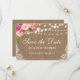Rustic Burlap String Lights Lace Watercolor Pink Floral Save the Date Card
