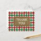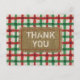 Rustic Burlap Red Green Plaid Holiday Thank You Postcard