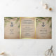 Rustic Burlap Tropical Palm Anchor QR Code Wedding Tri-Fold Invitation