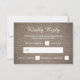 These RSVP cards are perfect for any couple planning a romantic country wedding. The design features a rustic burlap effect background with elegant white wording. The simple design can be personalized to suit your special event and will be the perfect reply card for any rustic chic themed party, including; bridal showers, engagements, wedding showers, birthday parties and much, much more.