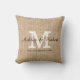 Rustic Burlap White Monogram Wedding Keepsake Throw Pillow