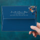 Expectations met; I liked that I had the opportunity to include our address on the back of the envelope. This color matched very well with my save the date. The color was the same as shown above. I had our address labeled on the back of the envelope and the font/printing met my expectations.