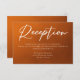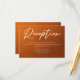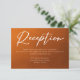 Follow the autumn trend of earthy tones with our burnt orange to brown gradient boho wedding reception card. Simple white typography on a rustic background for a minimalist look this fall. Bohemian hues reminiscent of terracotta clay highlight your elegant calligraphy on this trendy color fade textured enclosure card.